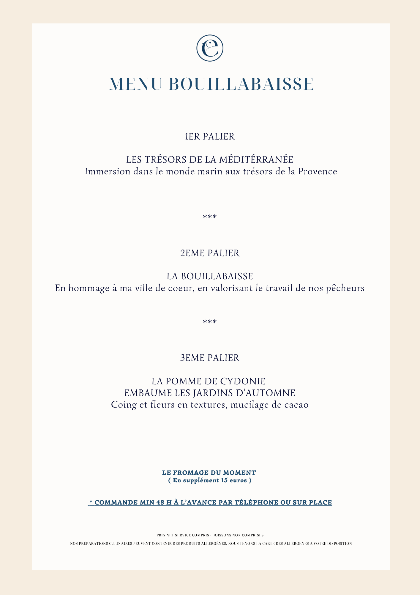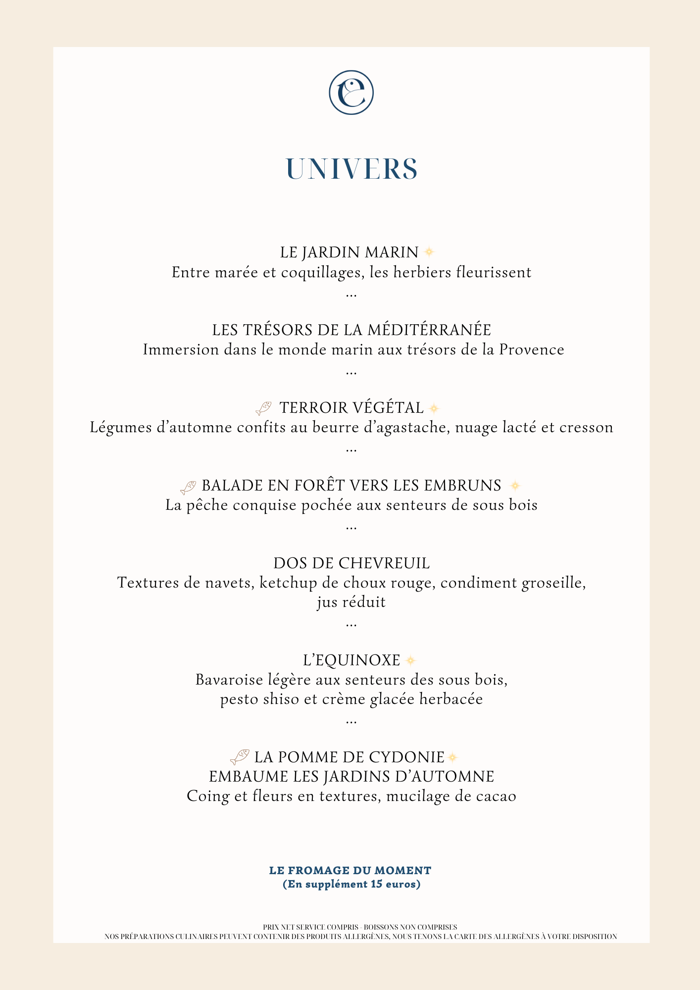 Inspiré par le monde marin, les poissons et les trésors de la Provence, il vous invite à sa table d’auteur pour vous faire vivre une expérience unique.